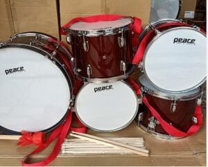 Bộ bao gồm: 1 trống lớn và 4 trống nhỏ, dùi gõ, dây đeo, hộp đựng carton 5 lớp
